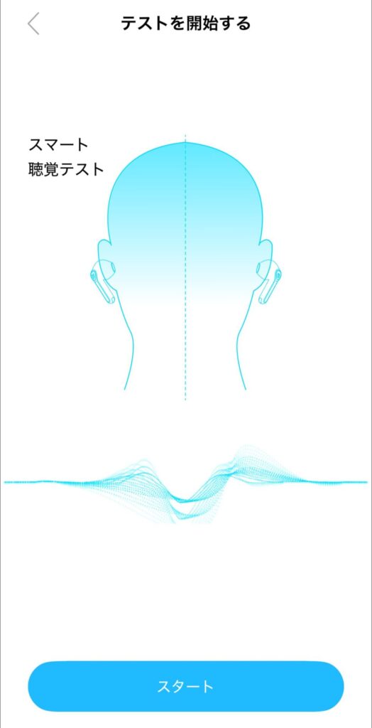 いろんな周波数帯で聴感テストを行い、その結果を基に個人に最適化されたサウンドにチューニング。数分のテストでなかなかいい感じのバランスにしてくれます。