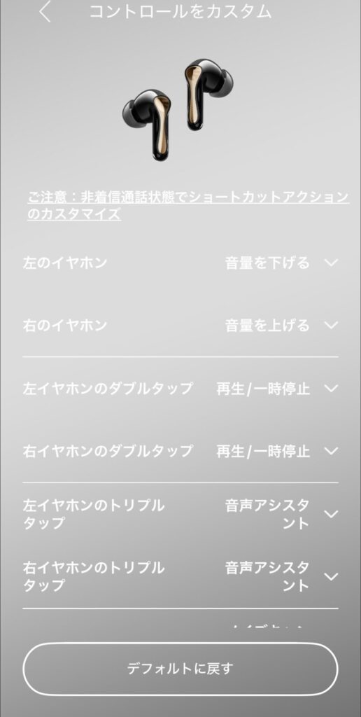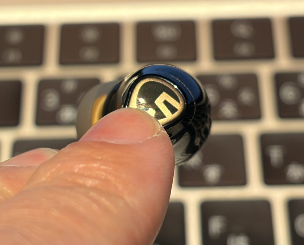 上でも書いていますが、操作はイヤホンの横を指でタッチ。このタッチの反応がイマイチなのです。