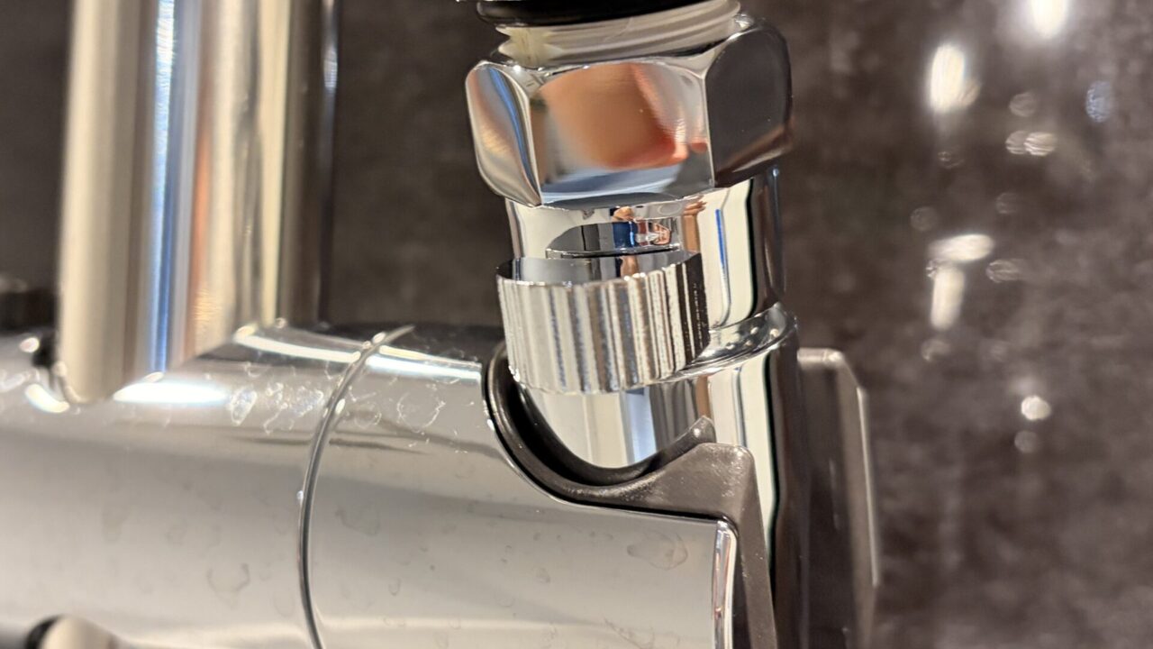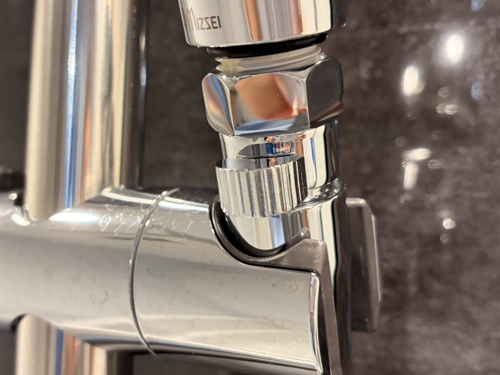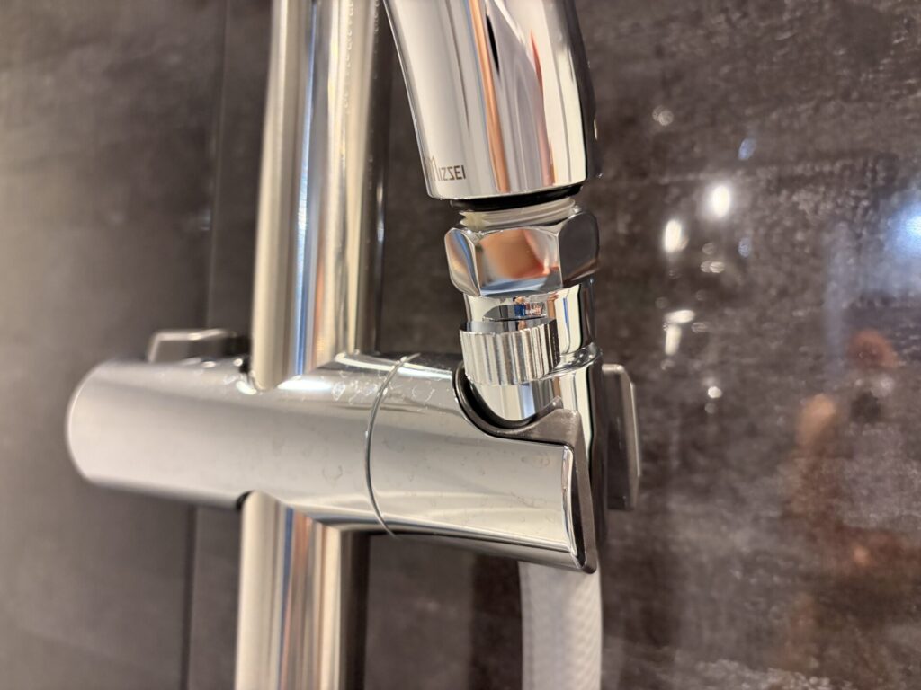 わたしはちょっときつめに締め込めば丁度良いレバー位置になりましたが、シャワーヘッドによってはレバーが後ろを向いてしまうかも。