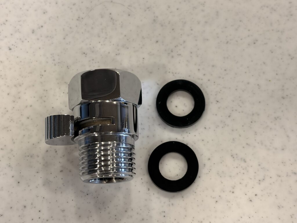 そう思ってボタン式のシャワーヘッドを探し始めた私ですが、最終的に辿り着いたのは、あえて後付けの「HAMOLE レバー式遮断バルブ」。