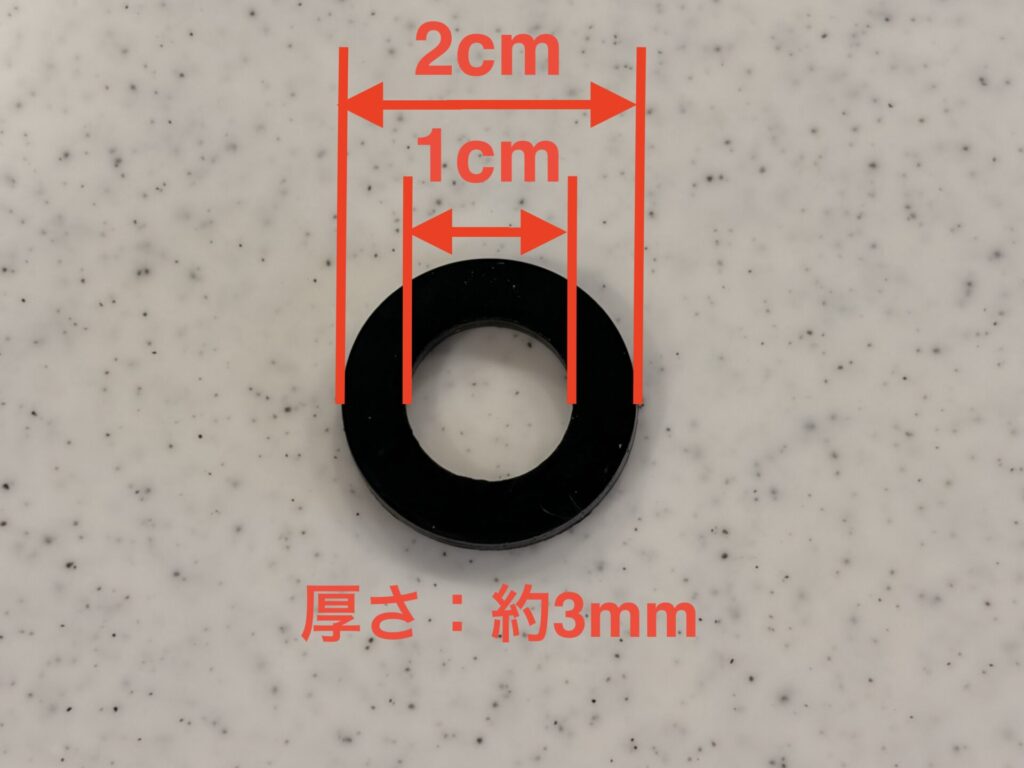 はじめから付属している黒色のパッキンの厚みは約3mm。