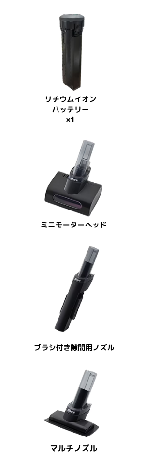 | サイズ(mm) (高さ x 幅 x 奥行) | コードレススティック 1080 x 228 x 321 ハンディ 336 x 89 x 245 収納時 1109 x 230 x 350 | コードレススティック 1080 x 228 x 321 ハンディ 336 x 89 x 245 収納時 1109 x 230 x 350 | コードレススティック 1038 x 228 x 160 ハンディ 514 x 98 x 72 収納時 1111 x 230 x 324 | コードレススティック 1038 x 228 x 160 ハンディ 514 x 98 x 72 収納時 1111 x 230 x 324 | コードレススティック 1040 x 228 x 160 ハンディ 510 x 91 x 71 収納時 1060 x 280 x 262 | コードレススティック 1040 x 228 x 160 ハンディ 510 x 91 x 71 収納時 1060 x 280 x 262 | コードレススティック 1041 x 267 x 152 ハンディ 510 x 91 x 71 収納時 1060 x 280 x 257 | コードレススティック 1068 x 260 x 316 ハンディ 336 x 89 x 245 収納時 1108 x 260 x 334 | コードレススティック 1040 x 258 x 114 ハンディ 510 x 67 x 86.5 収納時 1060 x 280 x 250 | コードレススティック 1030 x 267 x 124 ハンディ 500 x 67 x 86.5 収納時 1057 x 410 x 257 |